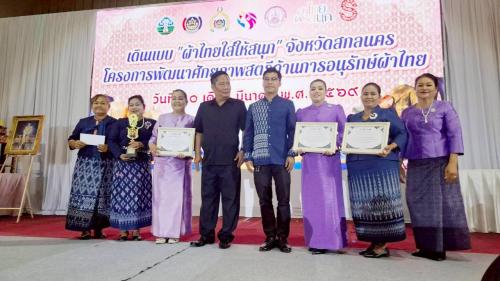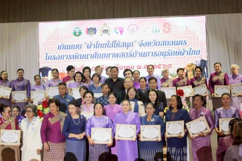 นายวีรรัตน์ ธีรมิตร รองผู้ว่าราชการจังหวัดสกลนคร เป็นประธานในพิธีเปิดโครงการพัฒนาศักยภาพสตรี ด้านการอนุรักษ์ผ้าไทย และอาหารพื้นถิ่น โดยมีนางอำนวย ยุทธคราม ประธานคณะกรรมการพัฒนาสตรีจังหวัดสกลนคร กล่าวรายงานวัตถุประสงค์ของการจัดกิจกรรม กิจกรรมในครั้งนี้ มีวัตถุประสงค์เพื่อเสริมสร้างศักยภาพสตรี และส่งเสริมการอนุรักษ์ชุดไทยพระราชนิยม ตลอดจนสืบสานภูมิปัญญาท้องถิ่นด้านผ้าไทยและอาหารพื้นถิ่น โดยภายในงานมีกิจกรรมสำคัญ ได้แก่